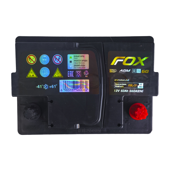 Аккумулятор Fox AGM 60 A/h 660 A R+ 278x175x190 мм
