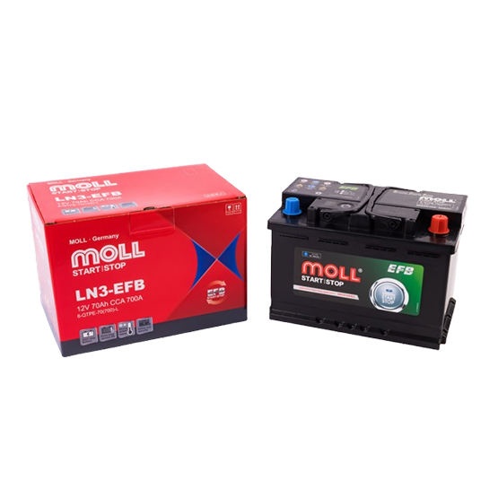 Аккумулятор MOLL EFB 6-QTPE-70 70 A/h 700 A R+. модель из линейки EFB (Enhanced Flooded Battery) немецкого производителя MOLL, предназначенная для автомобилей с системой Start-Stop и высоким энергопотреблением.