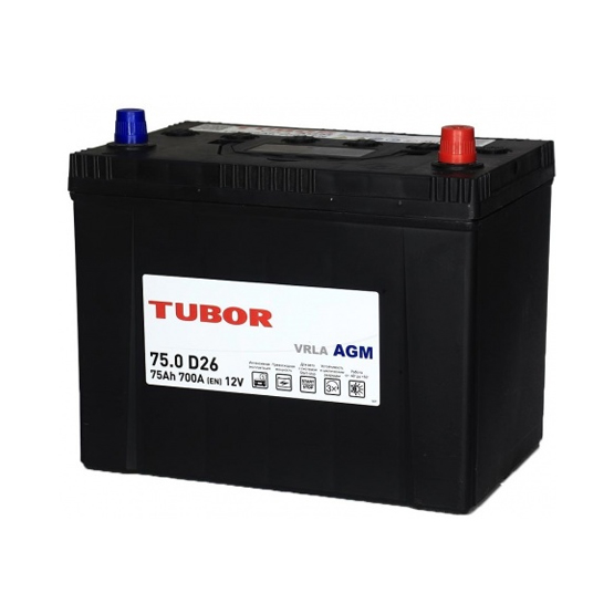 Аккумулятор Tubor AGM Asia 75 A/h 700 A R+ 255x175x220 мм