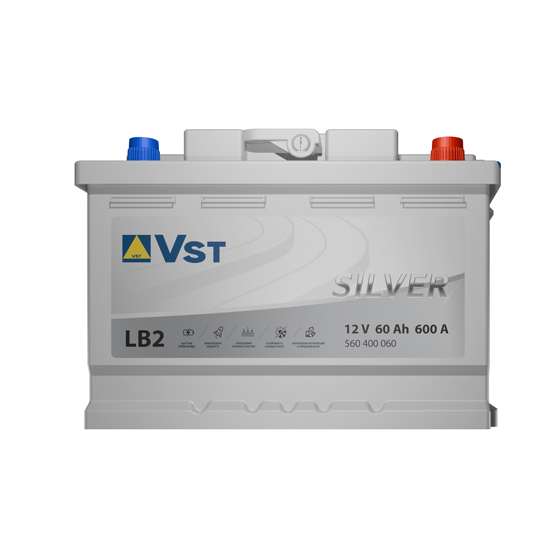 VST Silver 6СТ-60 LB2 60 A/h 600 A R+ — это стартерная свинцово-кислотная аккумуляторная батарея, предназначенная для широкого спектра легковых автомобилей. Она является частью линейки Silver, что указывает на использование современных технологий для повышения её производительности, надёжности и срока службы. Эта модель сочетает оптимальную ёмкость для большинства машин среднего класса и высокий ток холодного пуска, что делает её отличным выбором для эксплуатации в различных климатических условиях, включая холодную погоду.