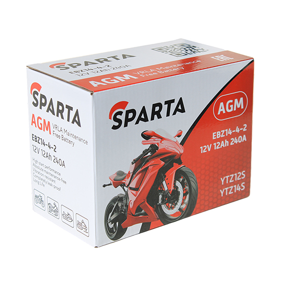 Аккумулятор Sparta AGM EBZ14-4-2 12 A/h 240 A L+ YTZ12S, YTZ14S 150x88x110 мм