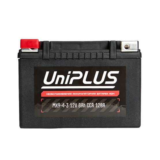 Аккумулятор UniPlus AGM MX9-4 8 A/h 120 А L+ YTX9 150x87x107 мм